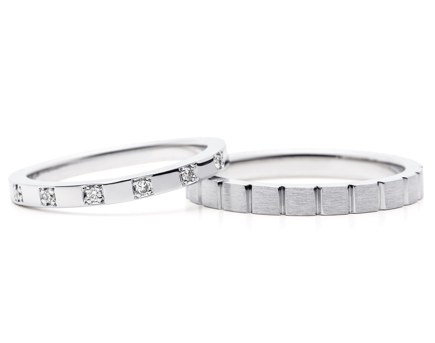 「結婚」という名の新しい旅路。1月にふさわしい「出発」という言葉を冠したこの指輪は、まさに年始にふさわしい一本です。デザインは、列車の車輪や線路を彷彿とさせる、力強くも美しい直線が特徴的です。