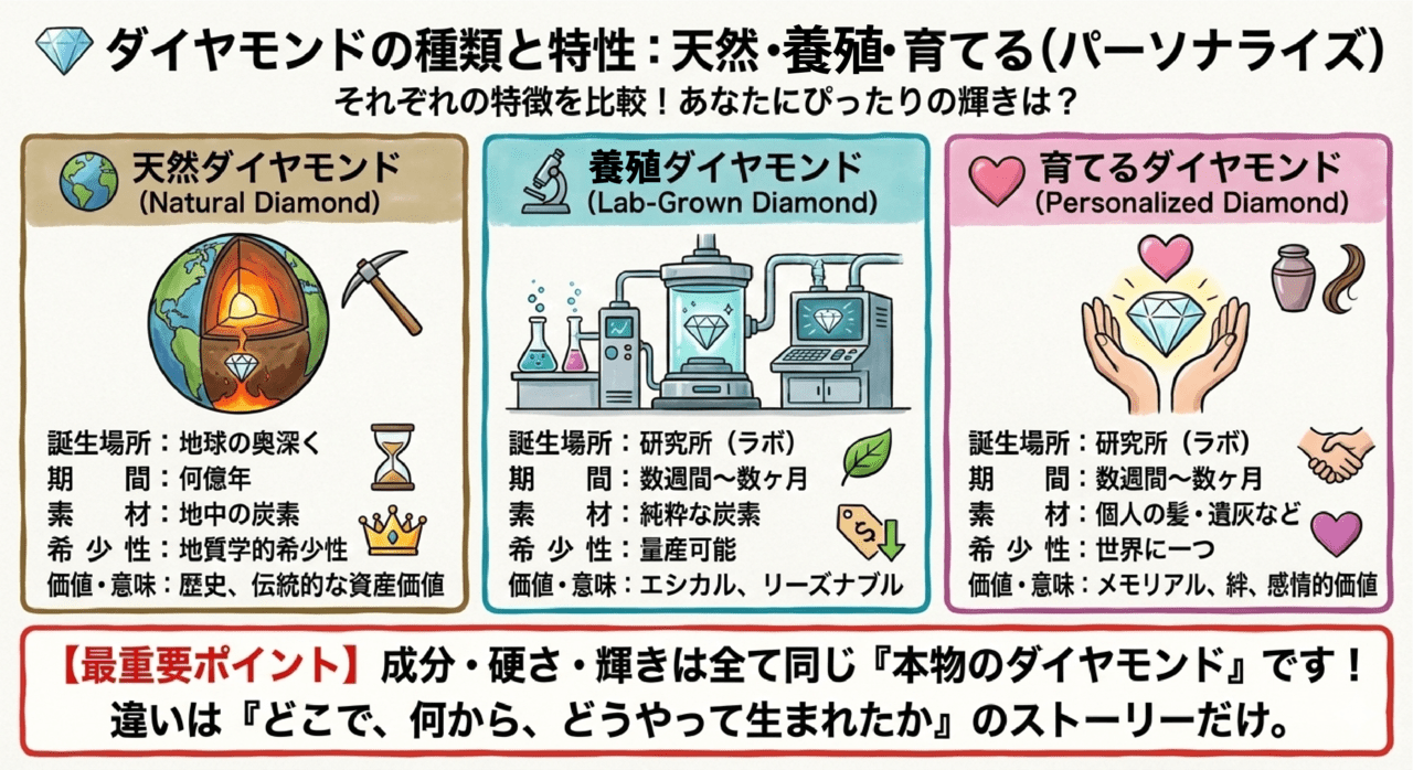 「どこで生まれたか」で選ぶ、3つの本物のダイヤモンドの輝き。