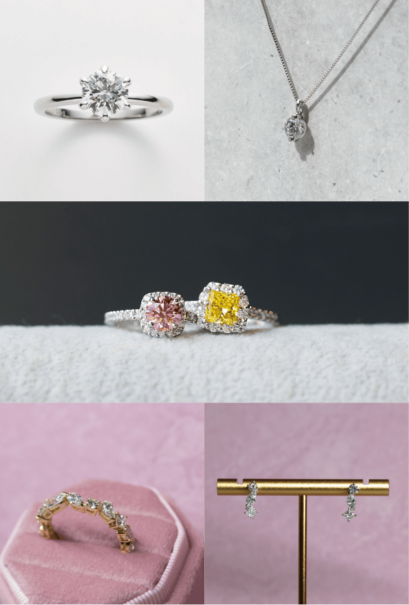 昔から愛されてきた天然ダイヤモンド、ラボグロウンダイヤモンド、そして、次世代の宝石体験「育てるダイヤモンド」を取り扱ったジュエリーをお届けいたします。